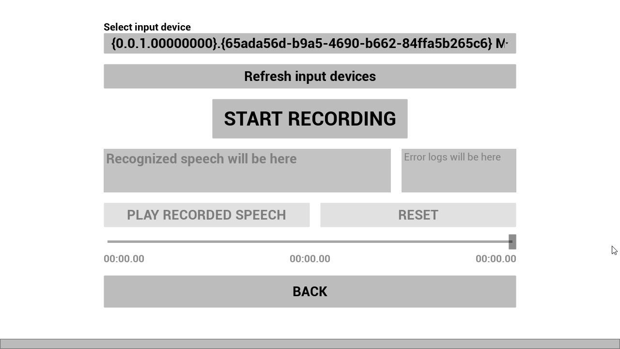 Diese Assets können verwendet werden, um das Beispiel der Spracherkennungsimplementierung zu testen und zu beobachten. Das Projekt enthält zwei Beispiele: eines zur Erkennung von Sprache über ein Mikrofon und eines zur Erkennung von Sprache aus einer Datei. Es unterstützt auch die Anpassung der Erkennungseigenschaften über das Einstellungsmenü.