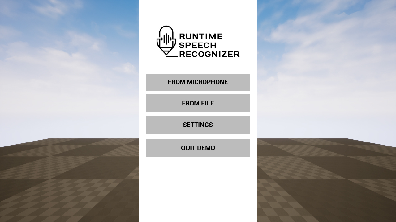 Um das Projekt zu testen, öffnen Sie einfach die RSR_Demo-Level, die sich im Demo-Ordner befindet, und spielen Sie sie im Editor ab. Dadurch werden spracherkennungsbezogene Widgets zu Ihrem Bildschirm hinzugefügt, mit denen Sie interagieren können. Sie können das Projekt auch für Ihr Zielgerät verpacken (um die RSR_Demo-Level als Standard in Ihrem verpackten Projekt festzulegen, wählen Sie RSR_Demo als Game Default Map in den Projekteinstellungen aus).