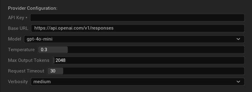 - Chiave API: La tua chiave API di OpenAI (richiesta)