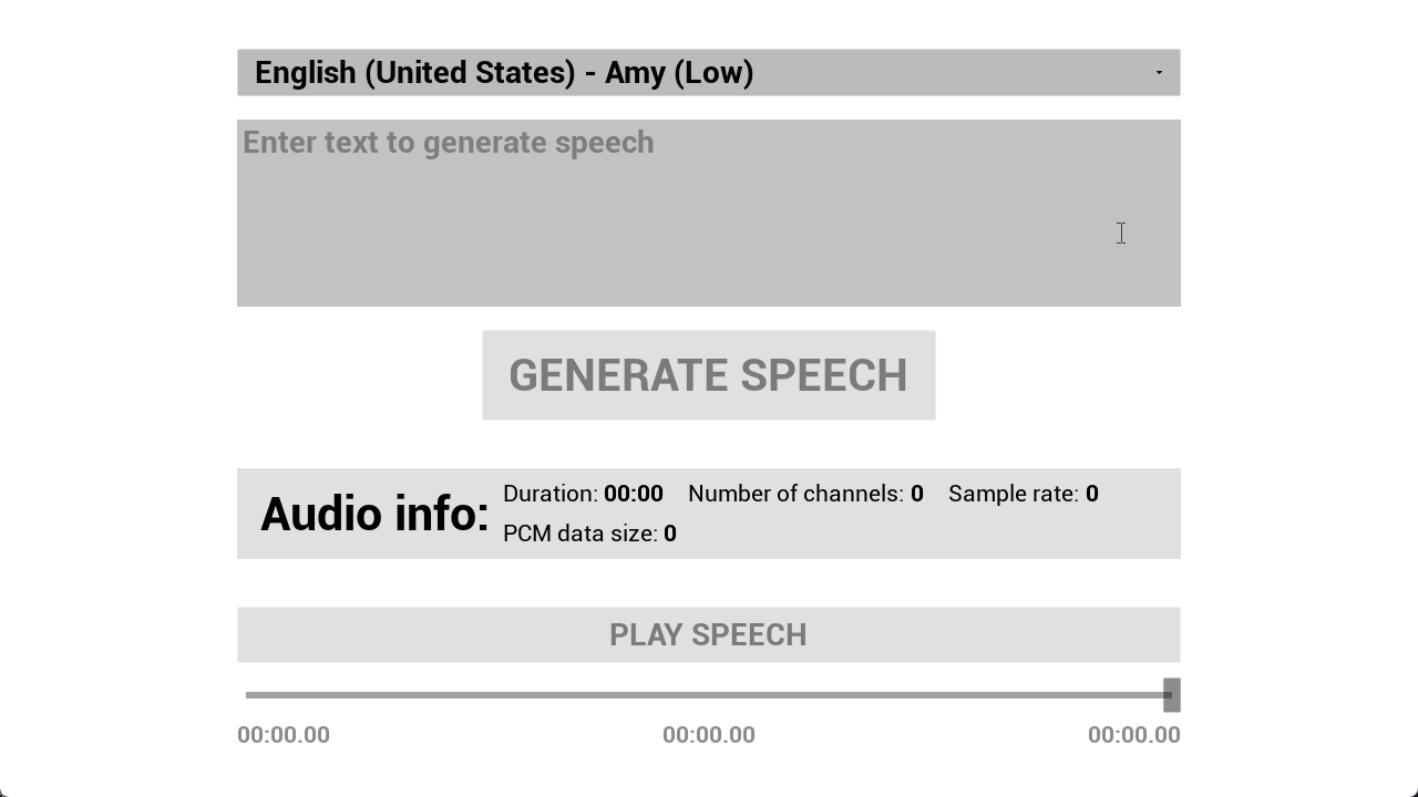 Esses assets são fornecidos para demonstrar a implementação da síntese de texto em voz. A demonstração inclui uma interface simples com: